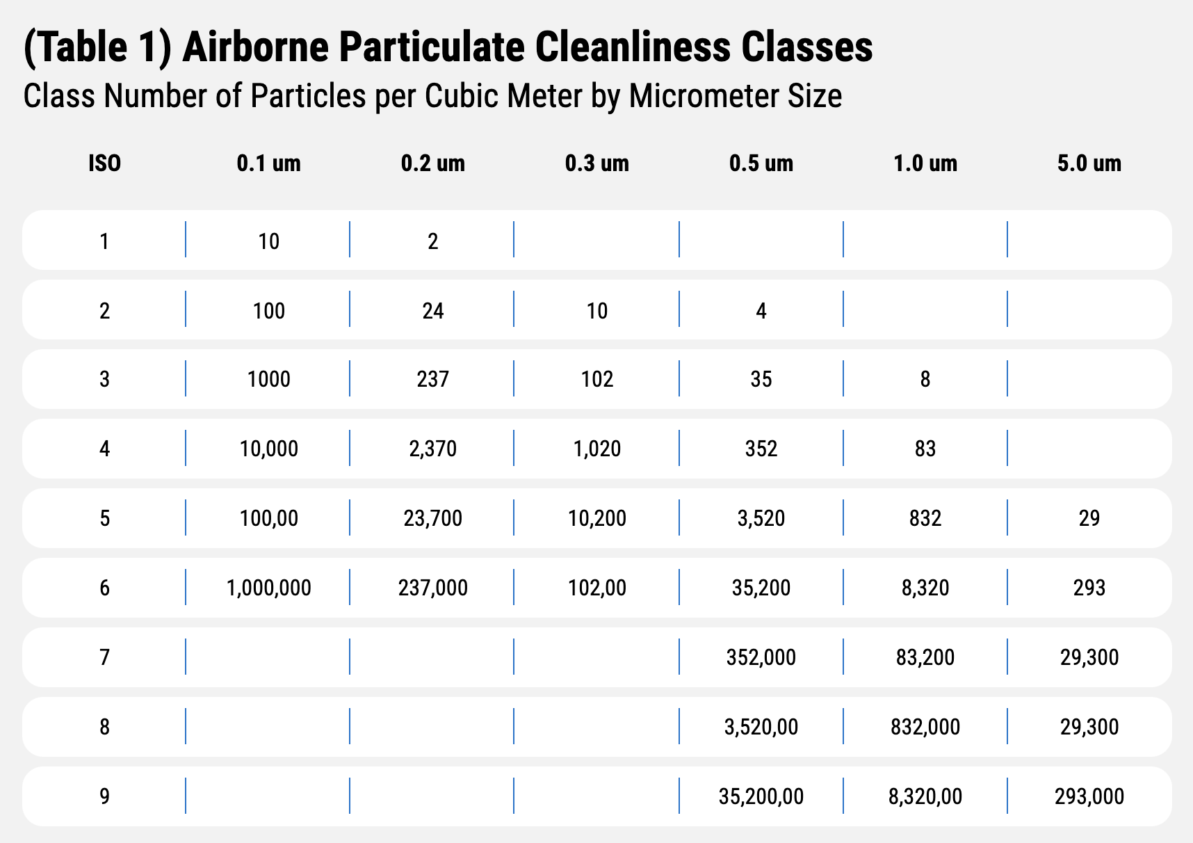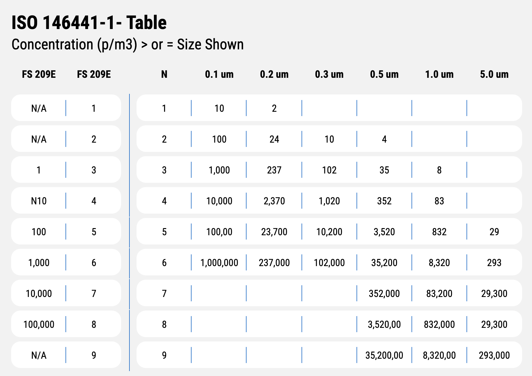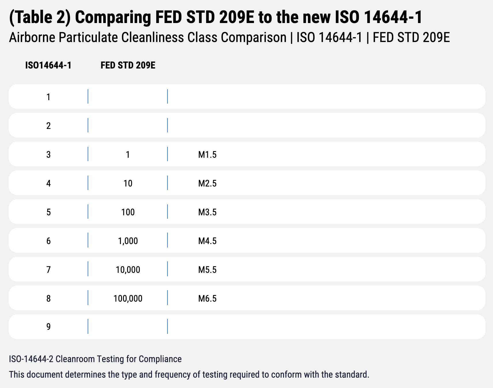 Airborne Particulate Cleanliness Class Comparison | ISO 14644-1 | FED STD 209E