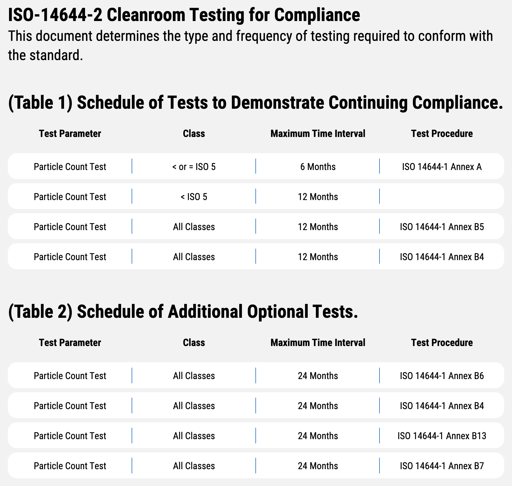 ISO/TC209 has proposed ten (10) documents which will make up the cleanroom standards. These documents are in their final voting stages and can be legally used in trade. The tables and sections below outline the first seven of these documents in order.